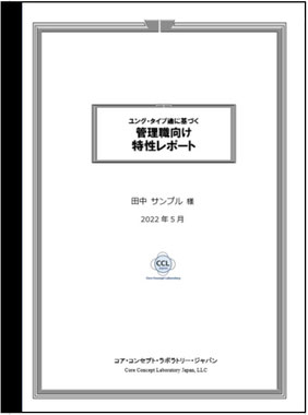 ユングのタイプ論に基づく『特性レポート』はユングコースへご参加いただいた方全員に配布されます。管理職バージョンと部下のいない専門職向けの専門職バージョンの2つがあります。このレポートは、あなたの心理的タイプに合わせて個別に作成される、充実したフィードバック資料です。管理職向けのレポートは30ページ程度になり、専門職向けはややページ数が減ります。